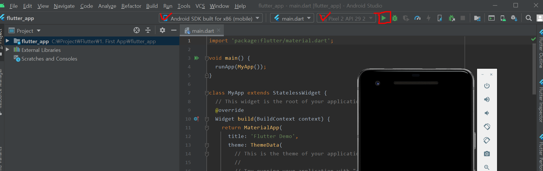 2. 플러터 아이콘 위젯을 이용하여 구현 하자.