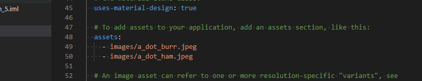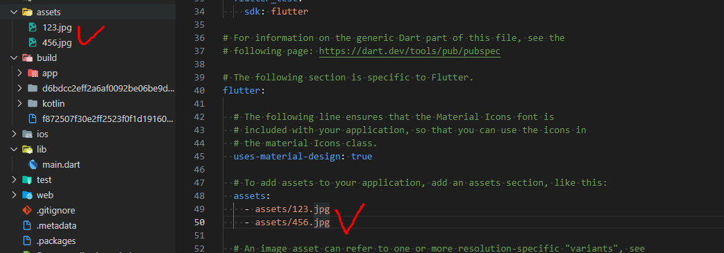 1. 플러터 앱 이미지 넣는 방법 1) 폴더를 만들어 준다. jpg파일 형태로.. 다른건 왜 안되는지 모르겠네요. 2) pubspec.yaml에 가서 이미지를 등록시킬 수 있도록 활성화를 시켜준다. 활성화 시켜주는 방법은 마우스로 영역을 설정 후에 Ctrl + / 를 누르면 활성화가 된다. 예) assets: - assets/123.jpg - assets/456.jpg