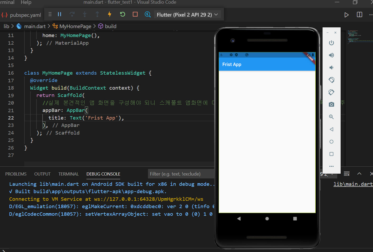 앱 페이지의 상단 AppBar에 색을 넣고 글씨를 넣었고
